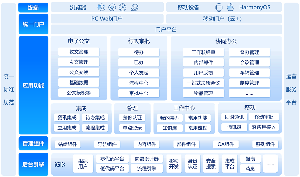 OA协同办公给予公文管理、会议管理、内部邮件、知识管理等协同应用,使用OA平台“低代码+零代码” 设计器,顺利获得拖拽方式即可快速建立协同办公与行政审批等流程,无缝适配统一门户平台,满足客户对日常办公流程构建需求,帮助企业无纸化办公规范各项业务,实现企业信息共享和高效协同。